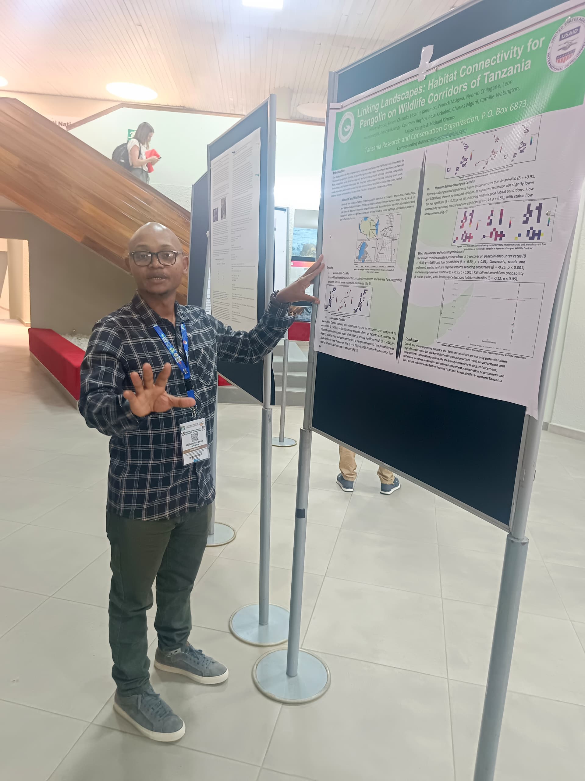 Hillary Mrosso gave a talk titled “Linking Landscapes: Habitat Connectivity for Pangolins in Tanzania, a landscape-scale study mapping functional connectivity for Temminck’s ground pangolin across the Amani–Nilo, Kwakuchinja, and Nyerere–Udzungwa corridors”. The study quantified encounter rates, movement resistance, and annual flow probabilities, providing critical insights for landscape-level conservation planning.