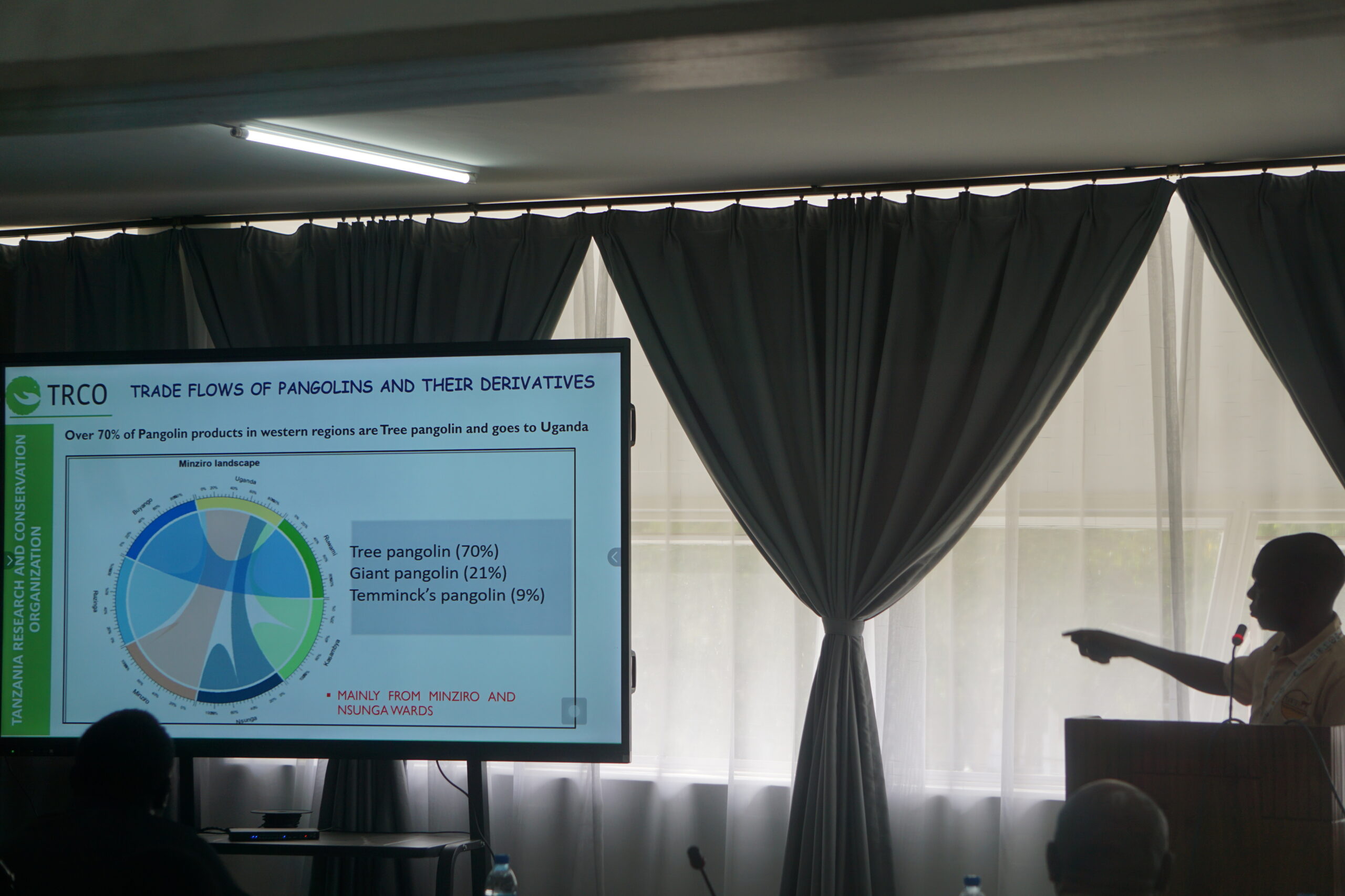 Nnyemo Chilagane shared critical insights on pangolin encounters, utilization, and illegal trade within the Mahale–Gombe–Moyowosi Landscape. The presentation emphasised the importance of shifting local attitudes, strengthening community-led monitoring, improving reporting mechanisms, and enhancing national and cross-border enforcement collaboration.