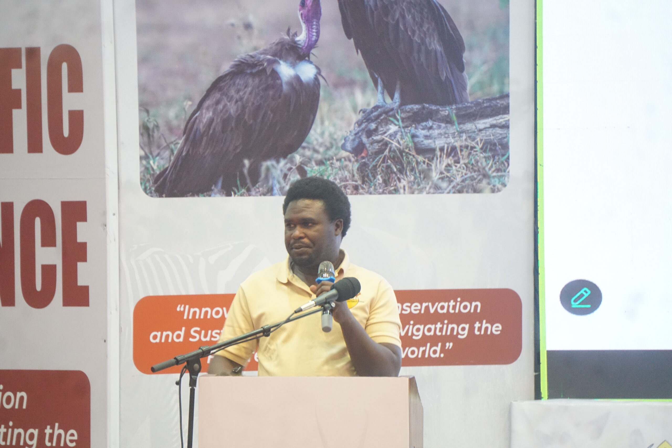 Fenrick presented research insights on the areas where pangolin and its derivatives are most commonly traded in the Burigi Minziro landscape- North western Tanzania, to researchers and conservation stakeholders during the 15th TAWIRI International Scientific Conference. Photo Credit: Hillary Mrosso